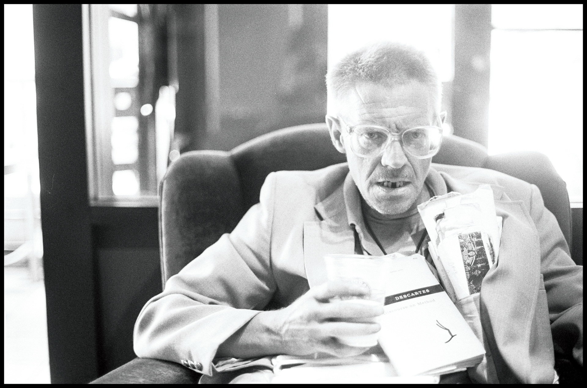 He was friends with people from The Village Copier and they let him photocopy entire philosophy books for free. His jacket was always bursting with the photocopied pages. I ran into him, by chance, after not having seen him in years and he let me take his portrait.